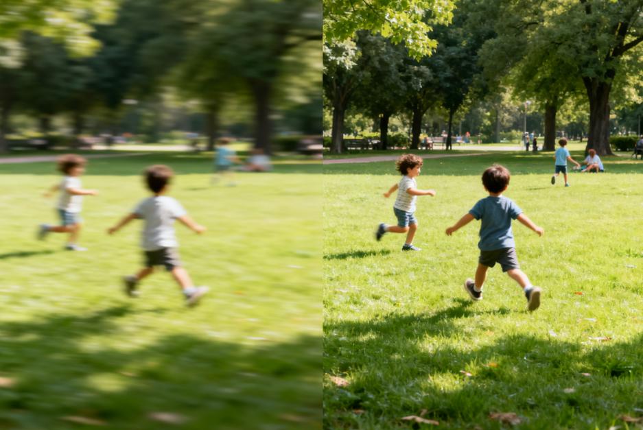 Modern AI models can analyze each frame, detect blurry objects, and predict how they should look in higher resolution. They don’t just “sharpen” pixels — they actually rebuild missing details based on context.