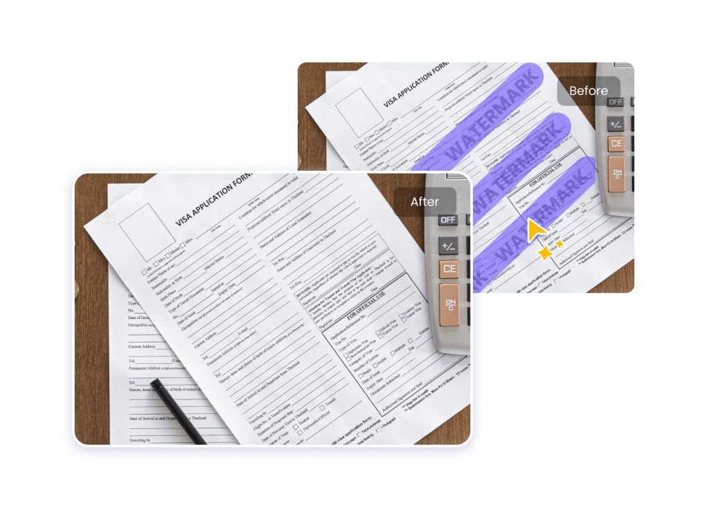 - Object Detection AI: Identifies the exact region of the watermark, even if it moves or changes transparency.