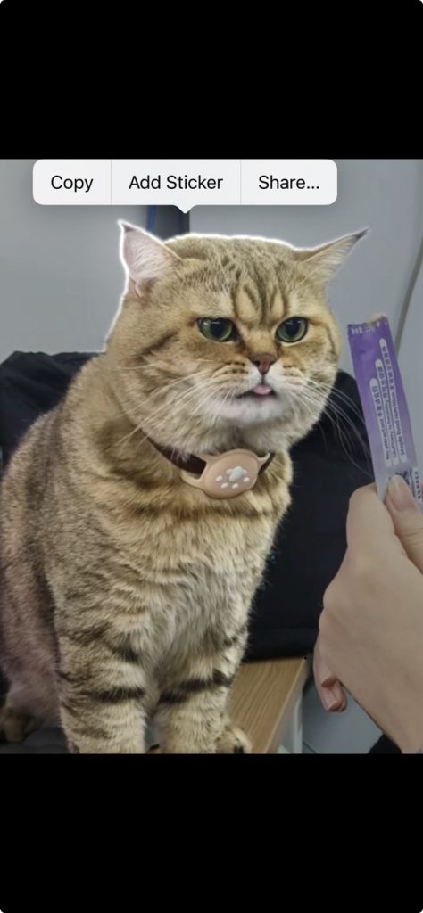 Apple’s official flow is: touch & hold subject → outline appears → Copy / Add Sticker / Share.