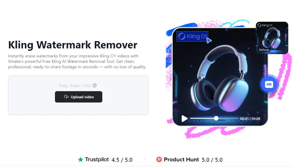 If you’ve already generated watermarked videos, third-party AI tools can help you Kling AI remove watermark with minimal quality loss.